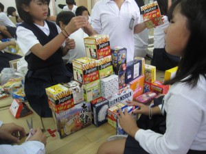 この説明に、子どもたちは、納得の様子。いつも見ている商品の箱にも、色んな工夫がされていることを学びます。