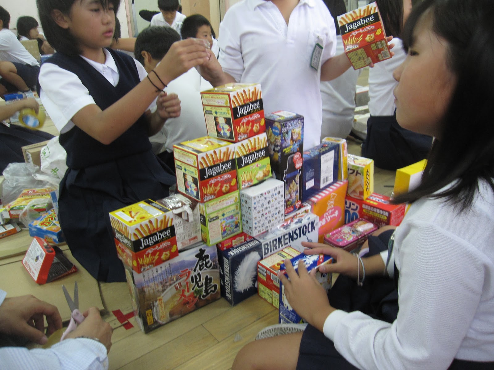 また、実際に手を動かしながら組み立てる過程、そして、箱に触れて重みや手触り、形のおもしろさを味わう過程でイメージやアイデアが生まれ、創作に結びついているように感じられました。