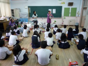 朝からどんよりと曇った空とは反対に、とても元気な子どもたちの挨拶で、授業が始まりました。