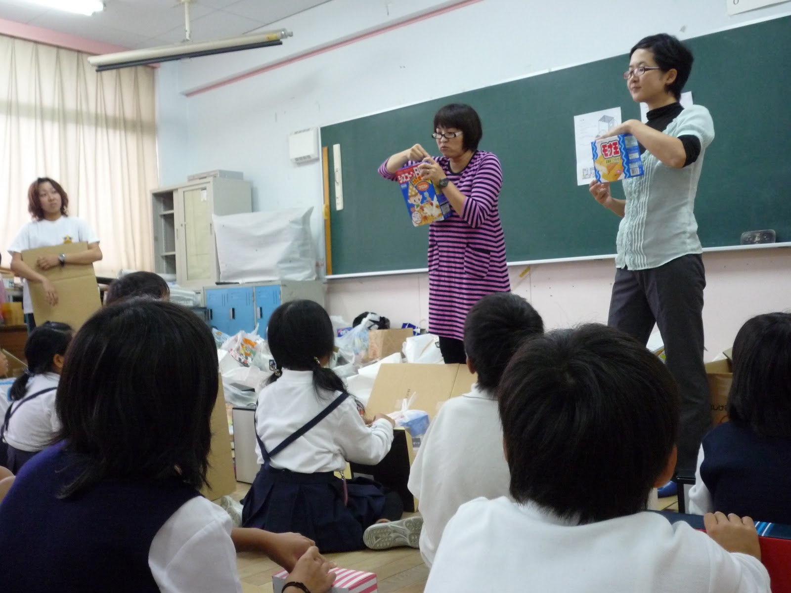 すると、三原さんは「みんな、さっき、スーパーで商品を売ってるって言ってたよね。例えば、会社の人が、“この商品を置いてくださいって”スーパーにお願 いしたとする。その時に、“ああ、うちの棚のサイズでは、この箱は置けません。”って言われてしまったら、困るよね。そんな時に、縦にしても、横にしても 置けるようにしておくと、お店に並べてもらいやすいよね。」