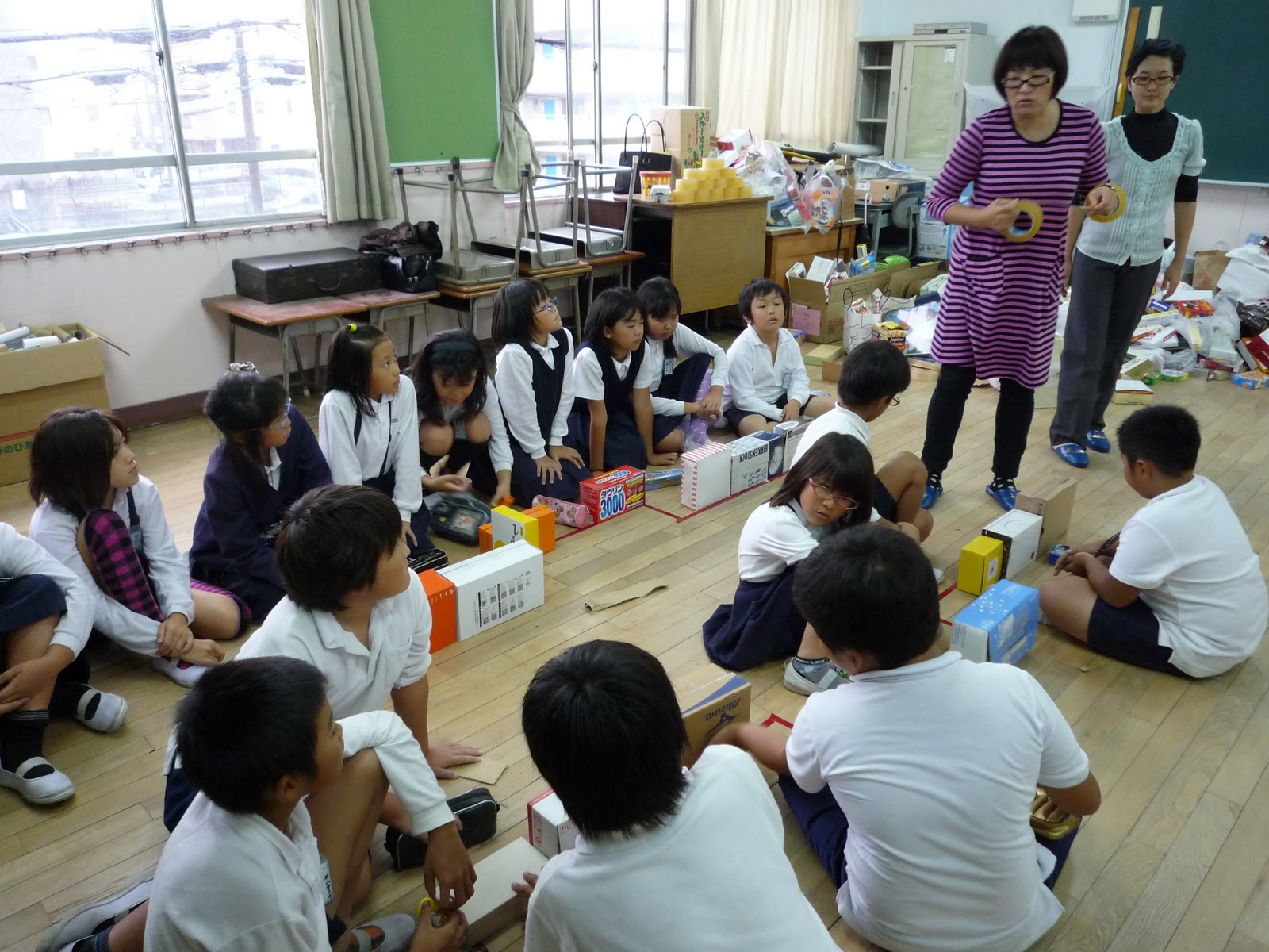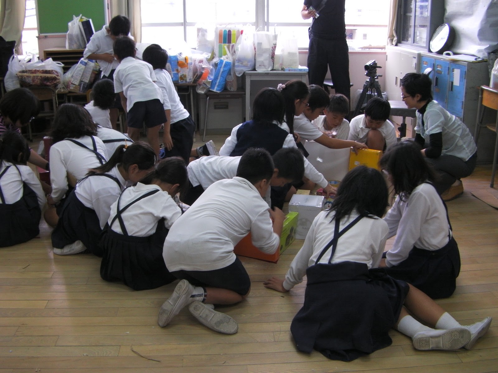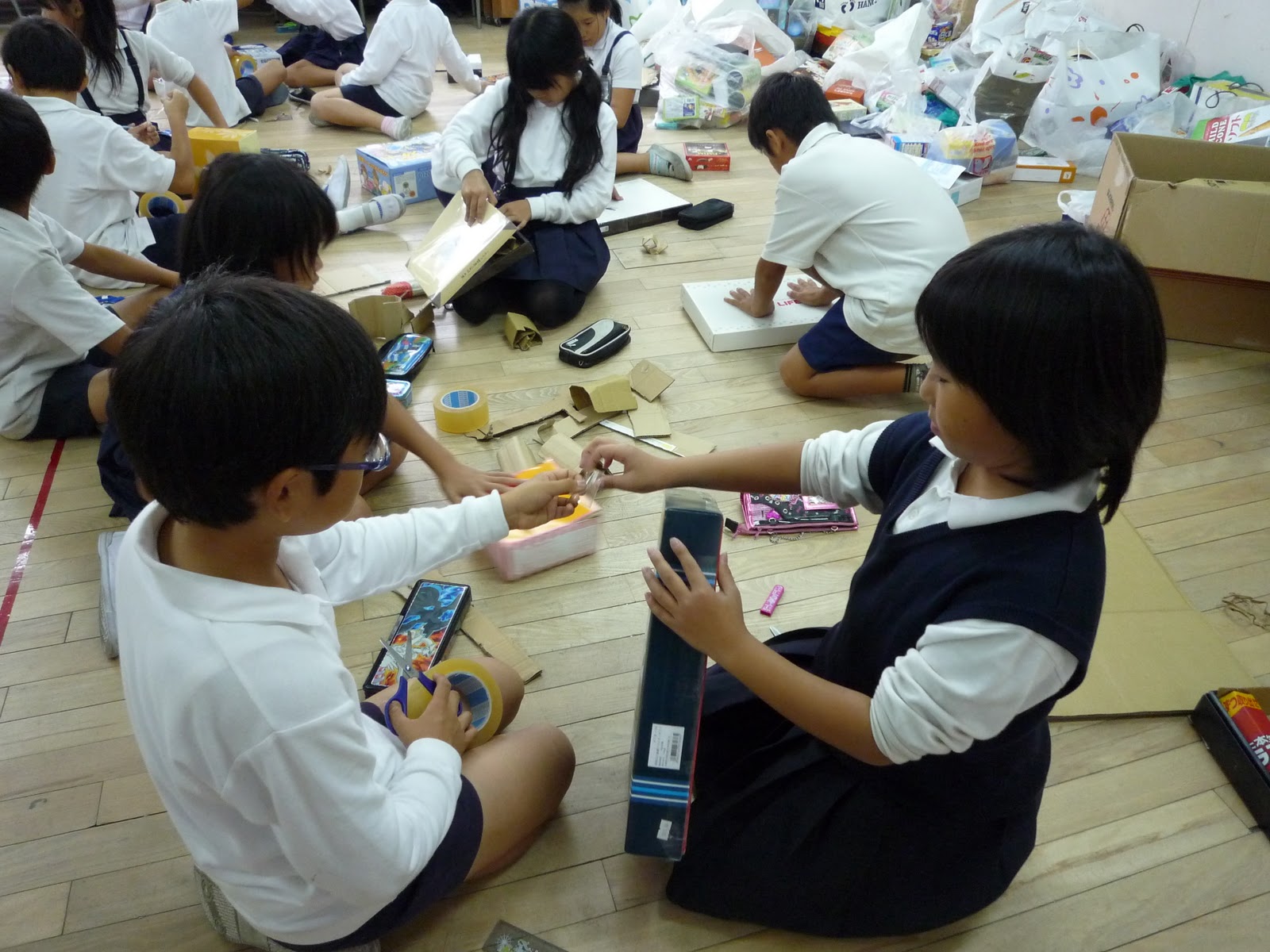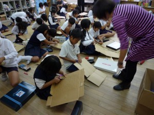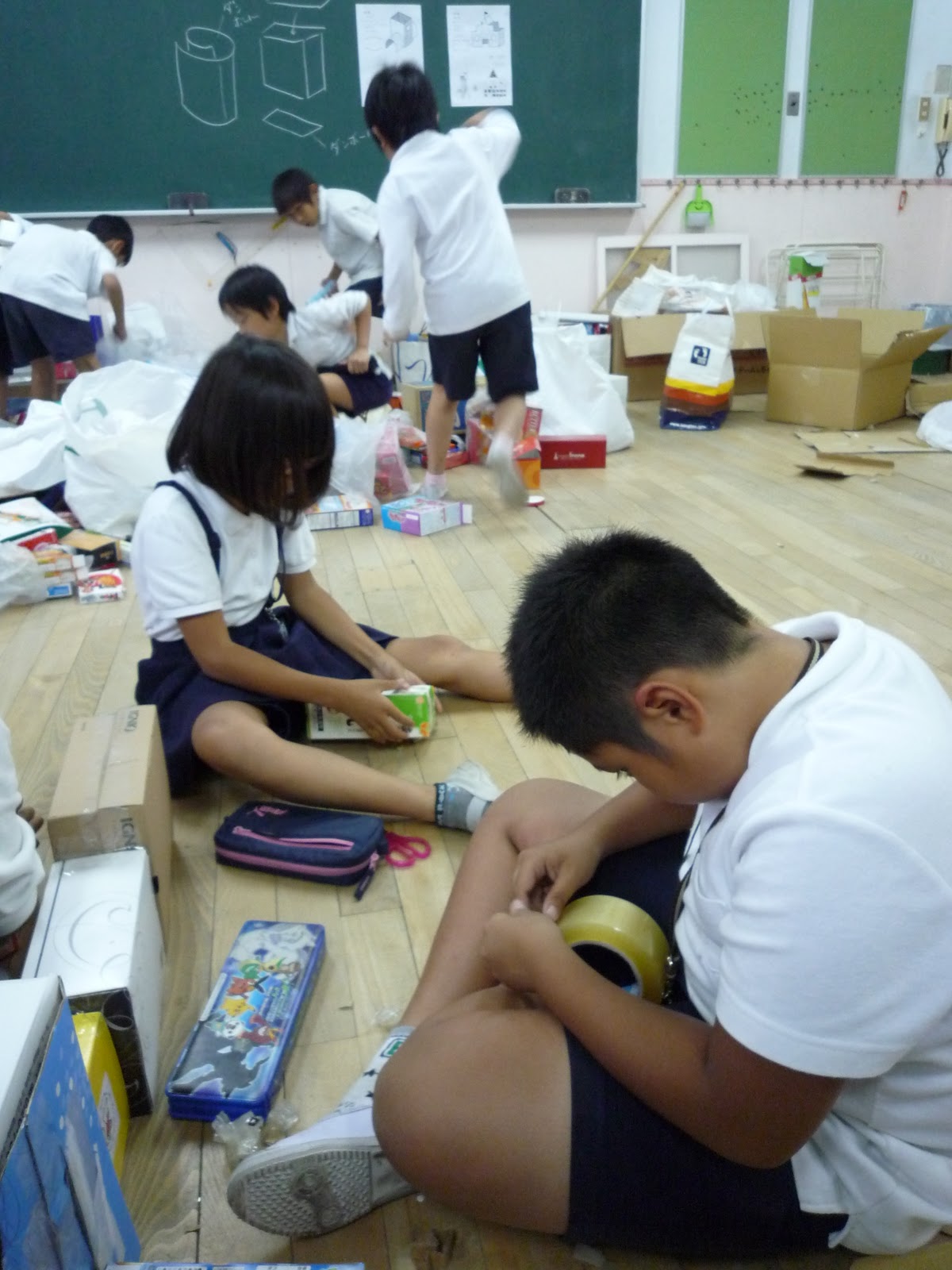 「よし、もっと作ろう!」と、いそいそと二度目の補強作業に励む子どもたち。もう、子どもたちも、やることがわかり、自分たちで動き出し、教室は、どんどん活気を帯びていきました。