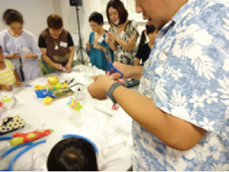 今回は激団モンゴイカさんに講師として来てもらったが、その作家自身をアピールでき るところがもう少しあってもよかった(例:チラシを配る、物販場所を設けるなど)。せっ かく、アーティストとの交流の場にもなっているので、アーティストのことをもっと知っ てもらう工夫もできれば、アーティスト側からも協力しやすくなり、また、アートの教育普及の取り組みにも繋がっていくのではないだろうか。