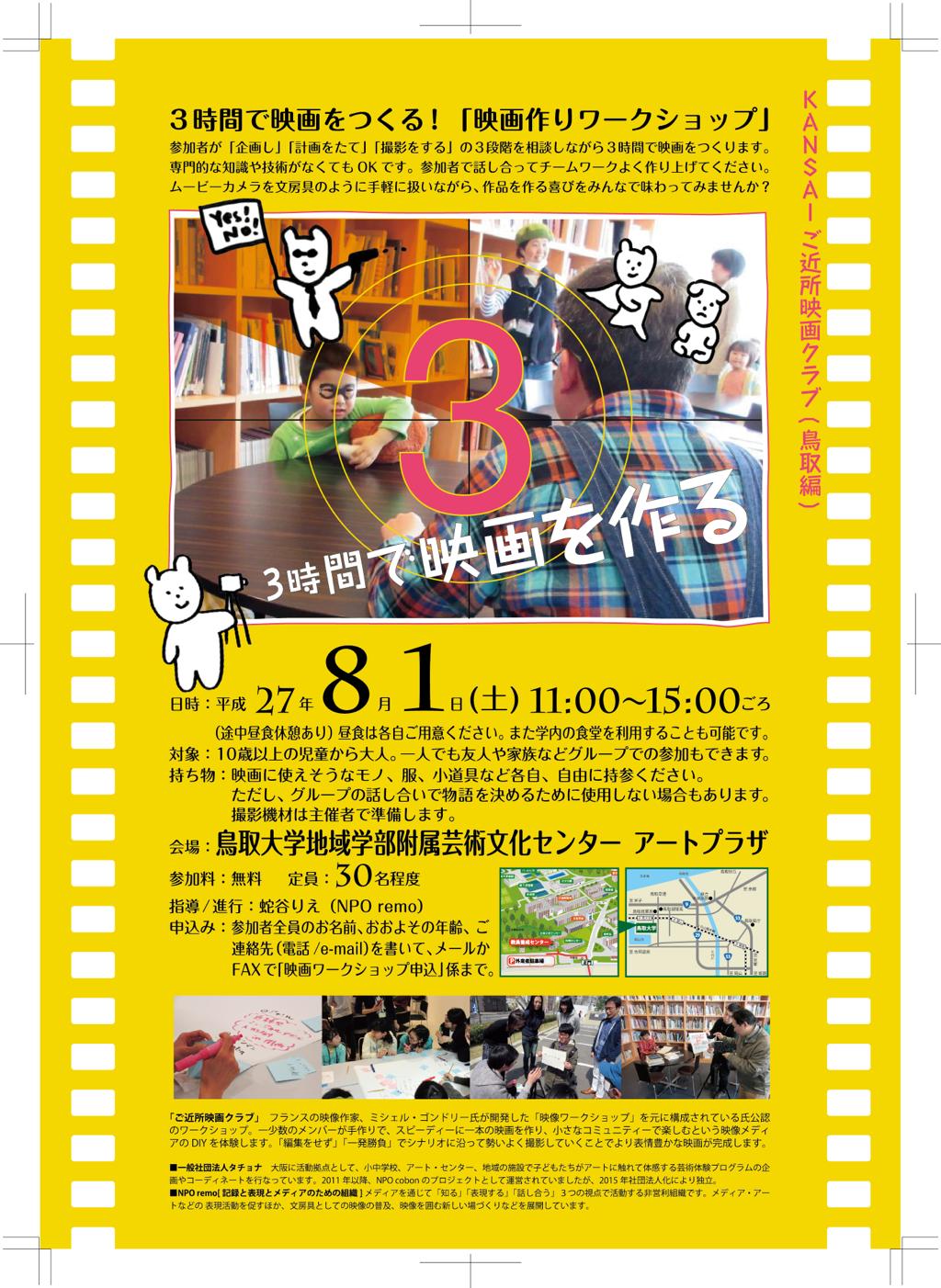 | 日時 | 8月1日(土)10:00- 17:00ごろ(映画作りワークショップも含みます) |