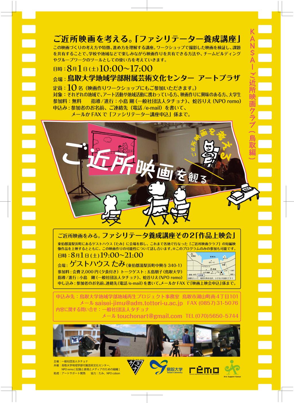共催:鳥取大学地域学部附属芸術文化センター、NPO remo [記録と表現とメディアのための組織])