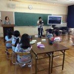 お昼休み後、学習発表会として、保護者の方々もお招きし、ワークショップでできた作品の報告会。まずは、池田さんから切り起こしについて簡単に説明します。